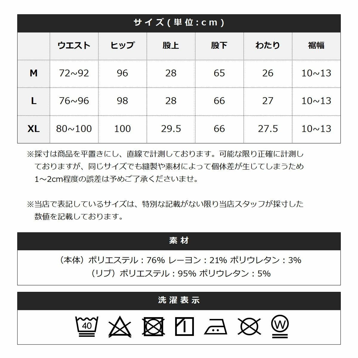 (本体)ポリエステル:76% レーヨン:21% ポリウレタン:3%