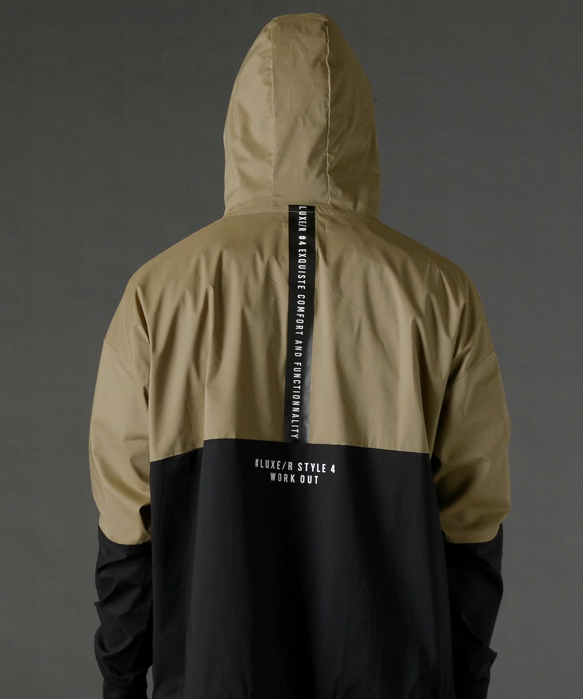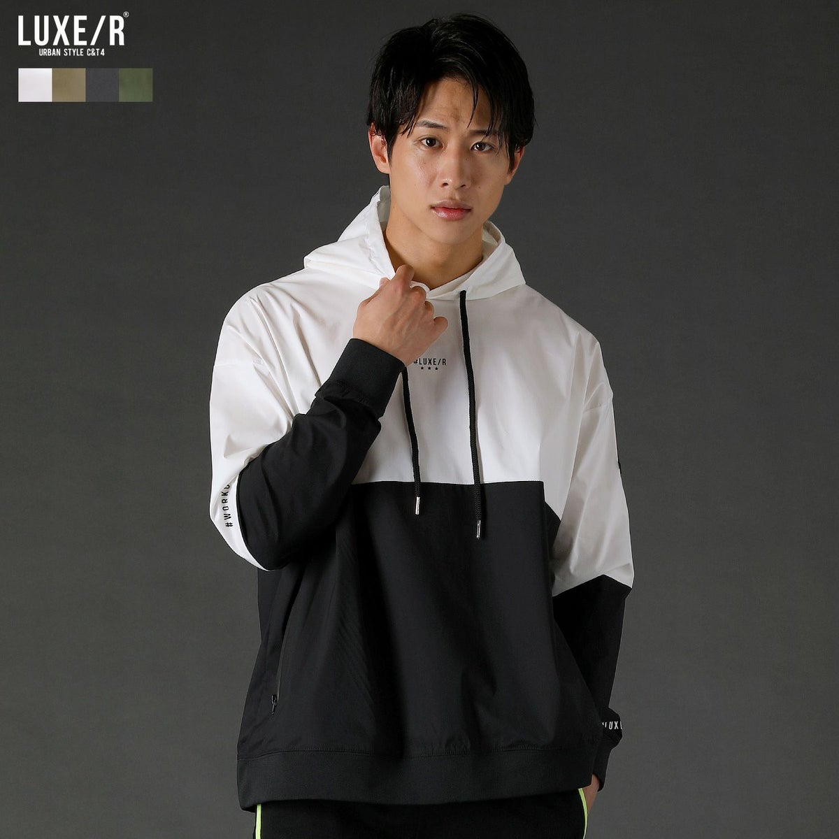 4. ストレッチ布帛長袖バイカラープルパーカー