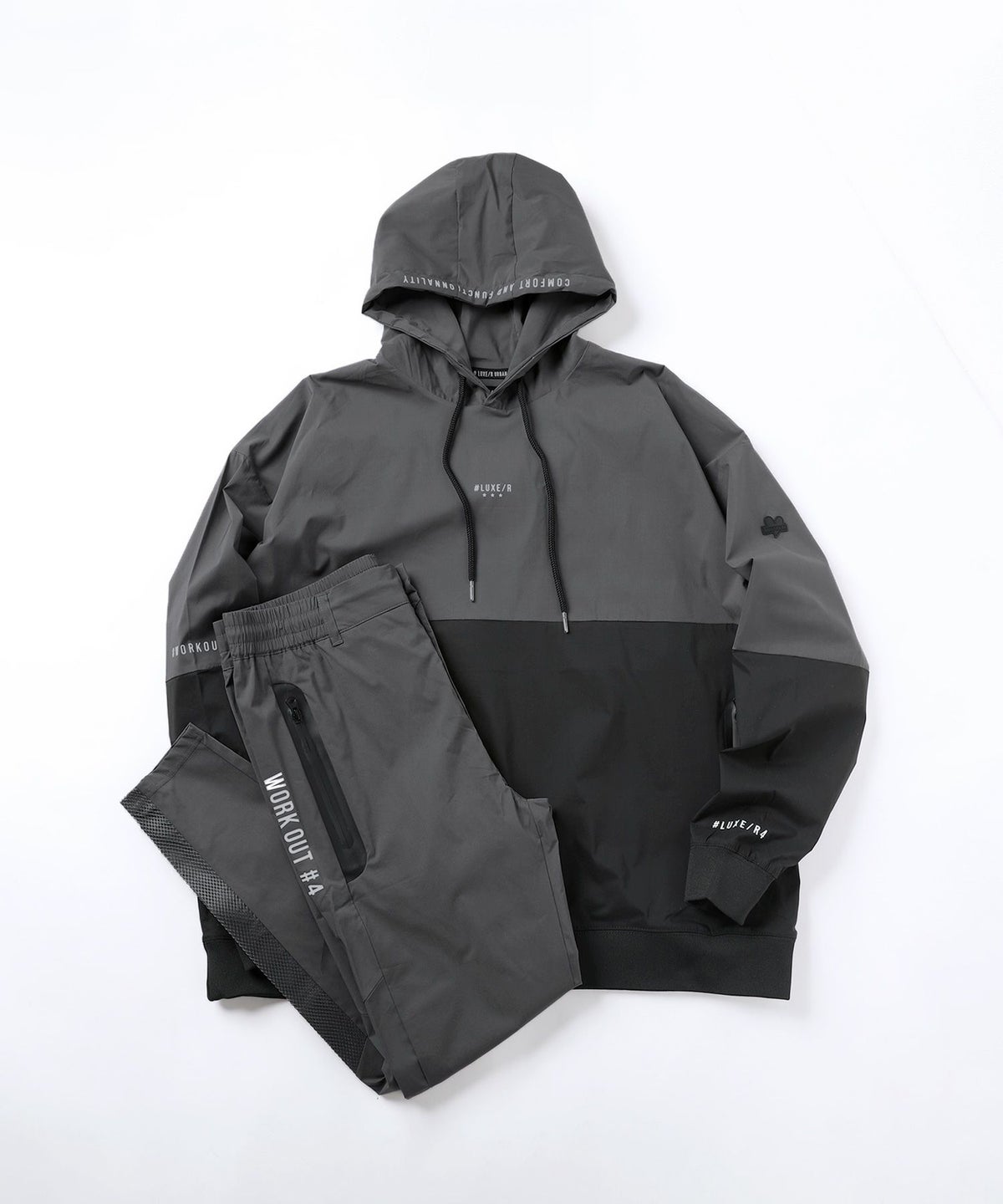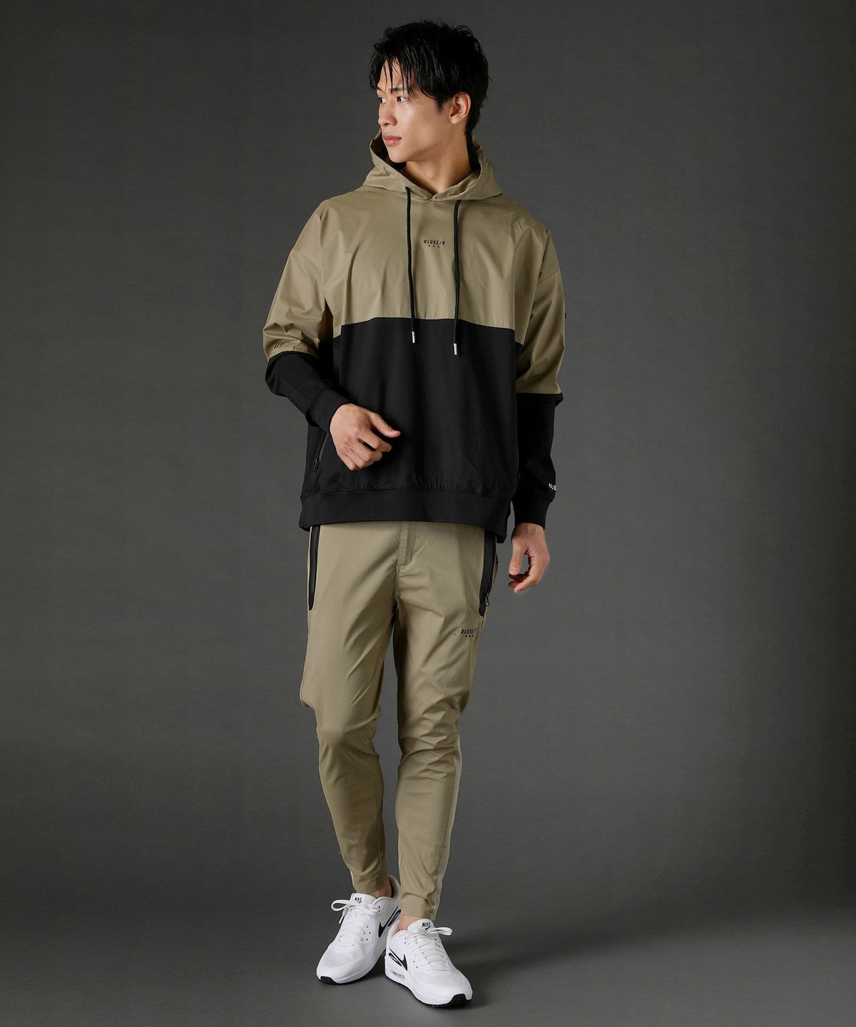 同素材の裾ジップパンツジップジョガーパンツをご用意しておりますのでセットアップでの着用もおすすめです。