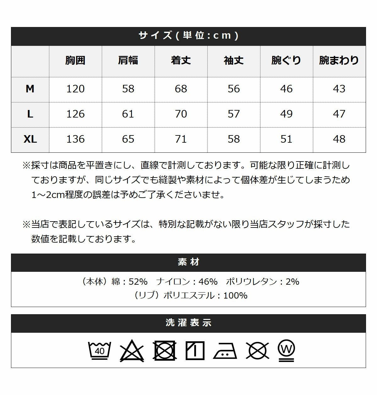 【本体】綿:52% ナイロン:46% ポリウレタン:2%