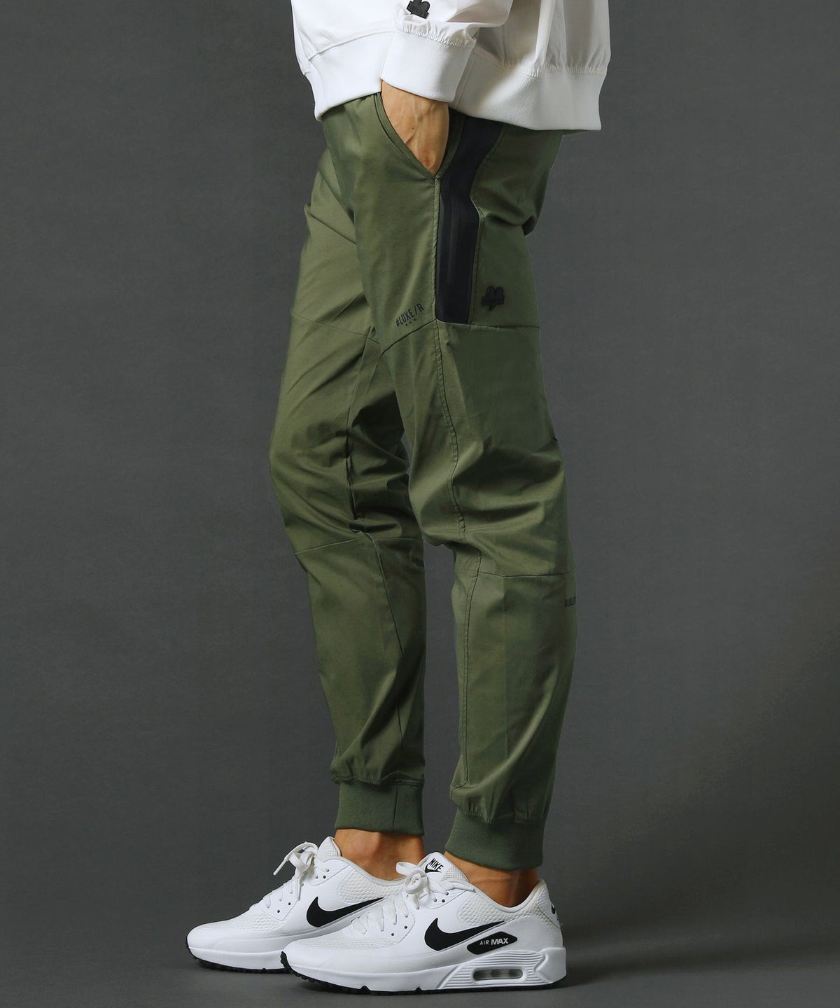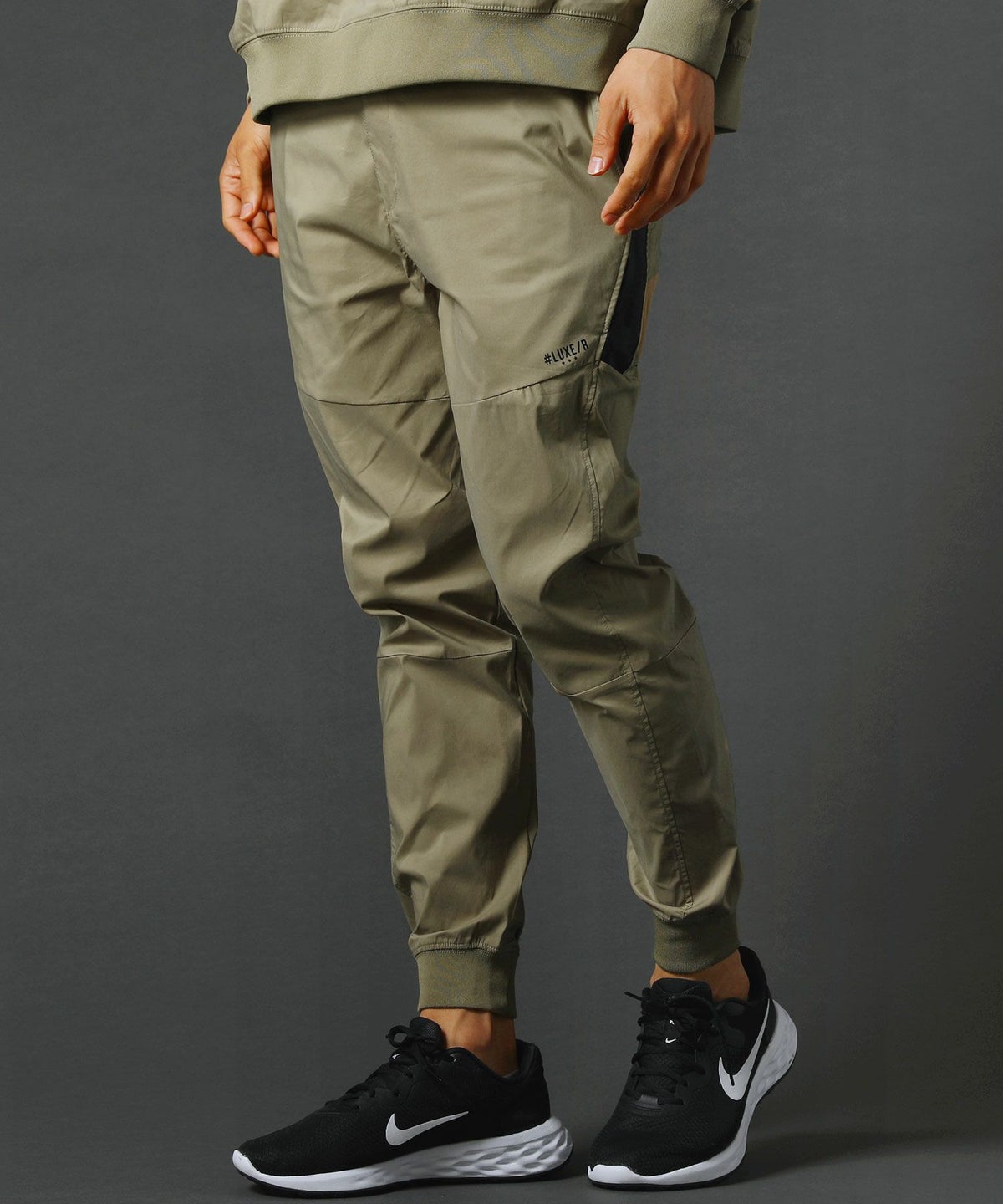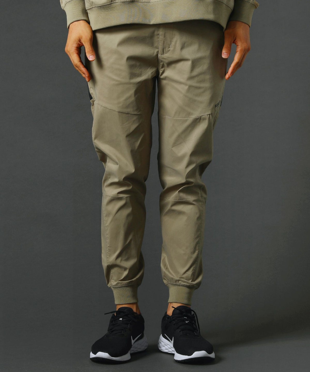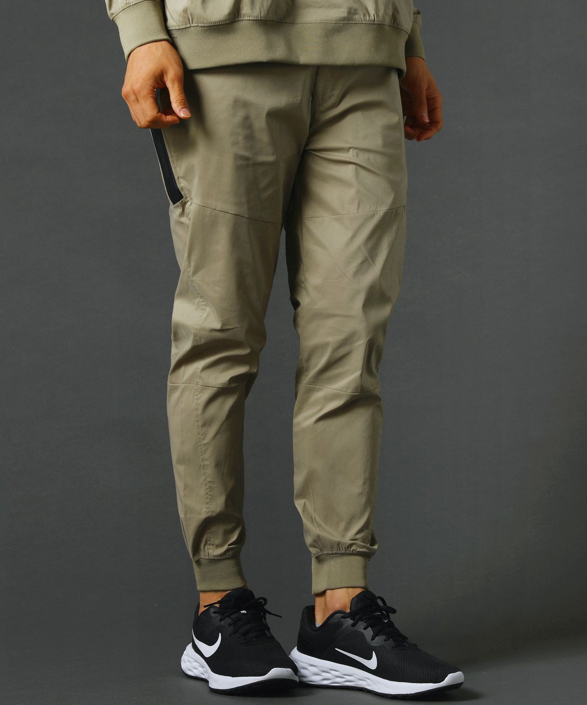 ベルトループ付きストレッチ布帛メッシュ貼付止水ジップジョガーパンツ
