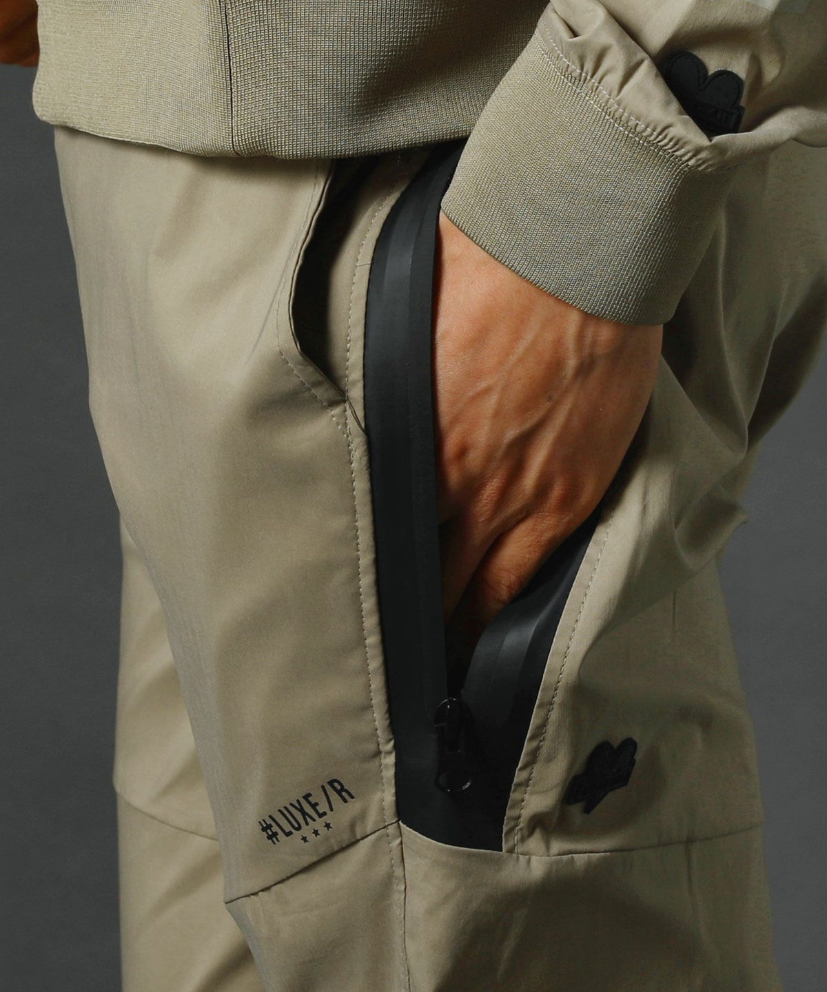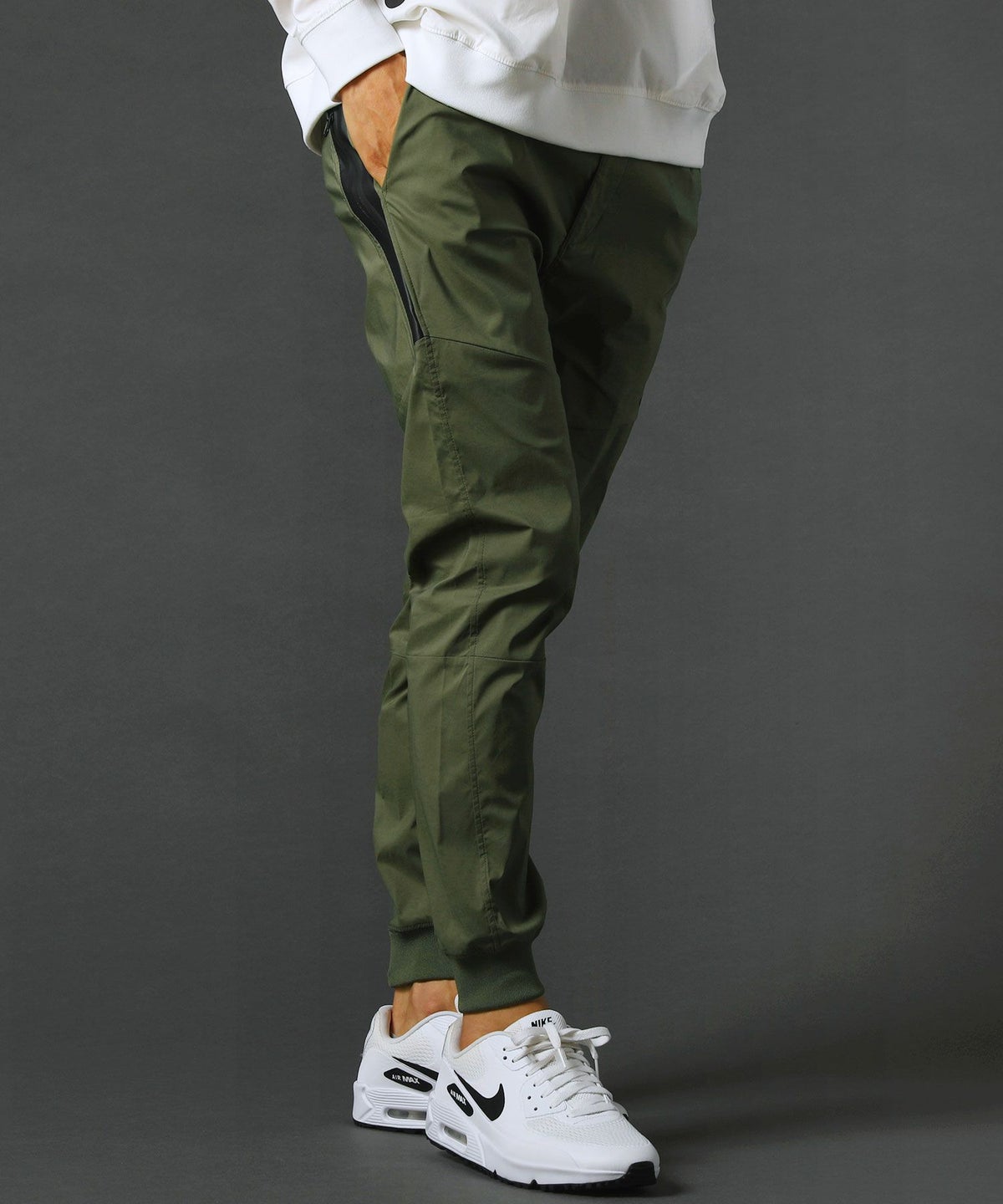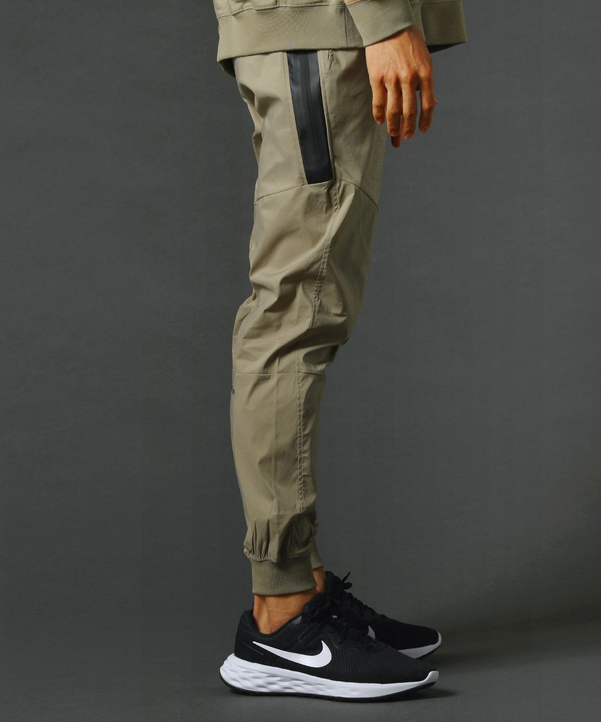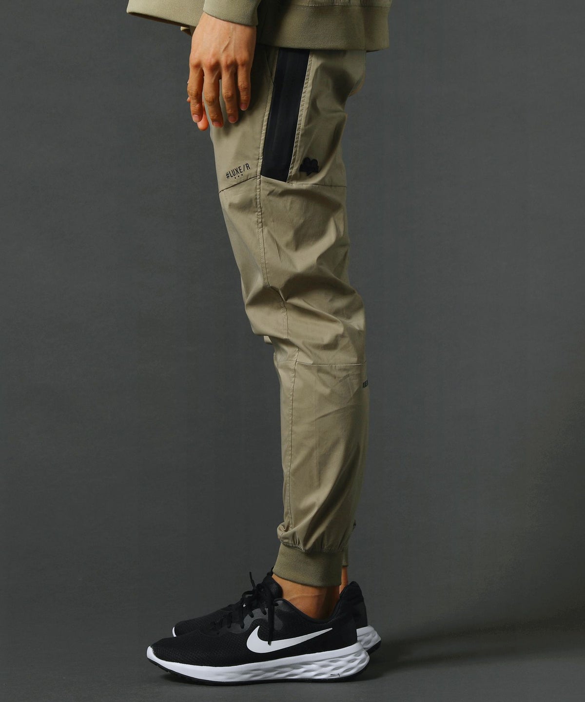 ベルトループ付きストレッチ布帛メッシュ貼付止水ジップジョガーパンツ