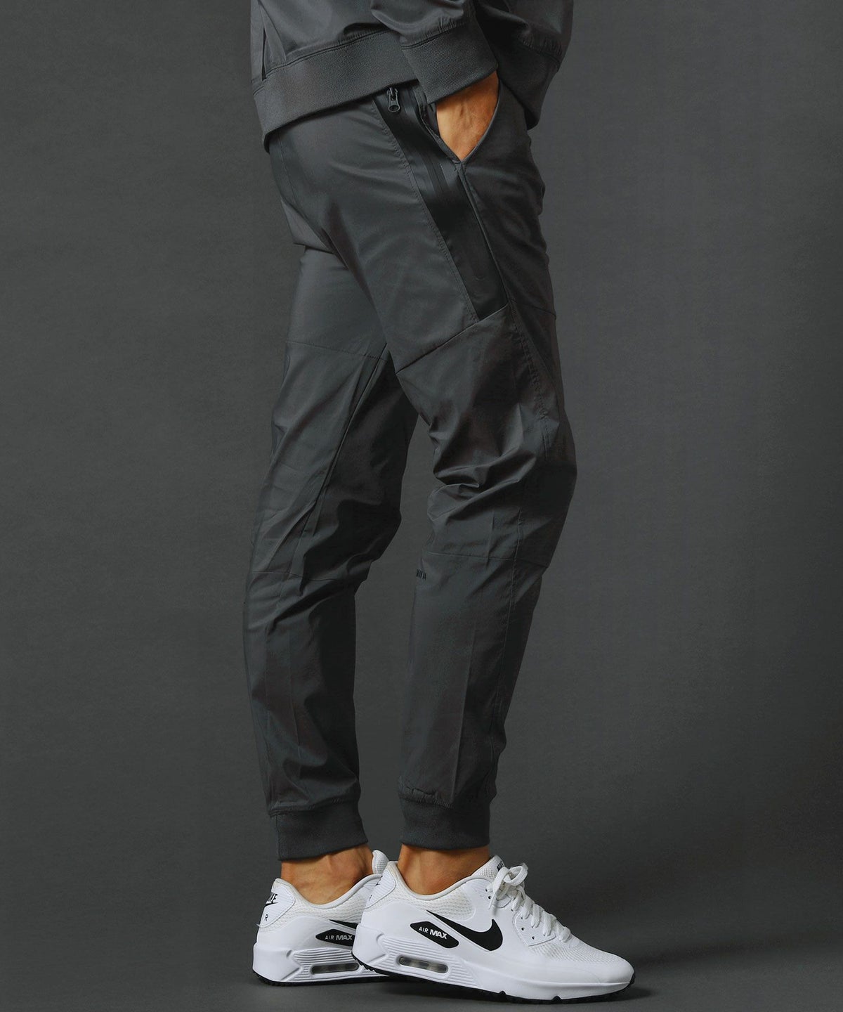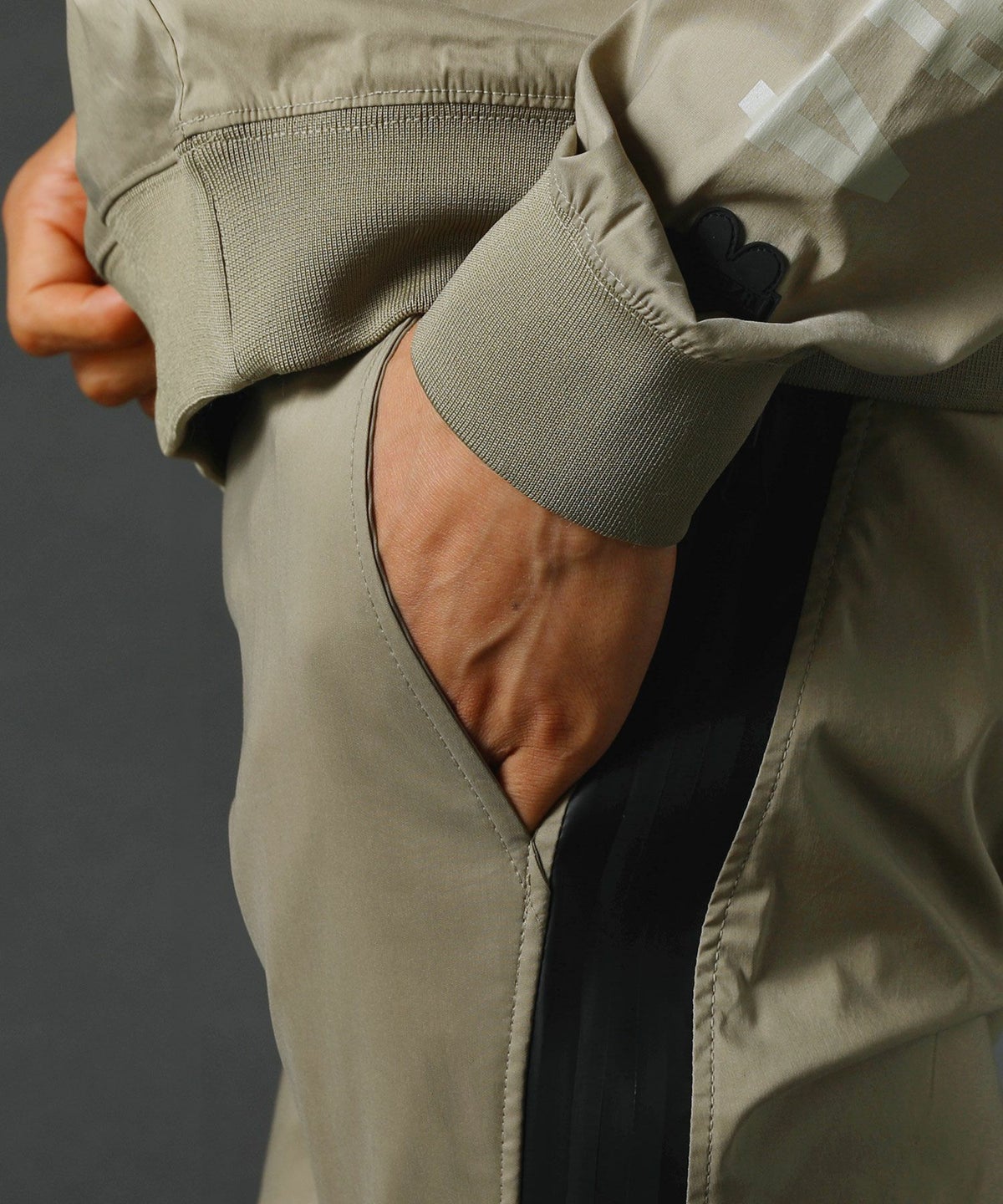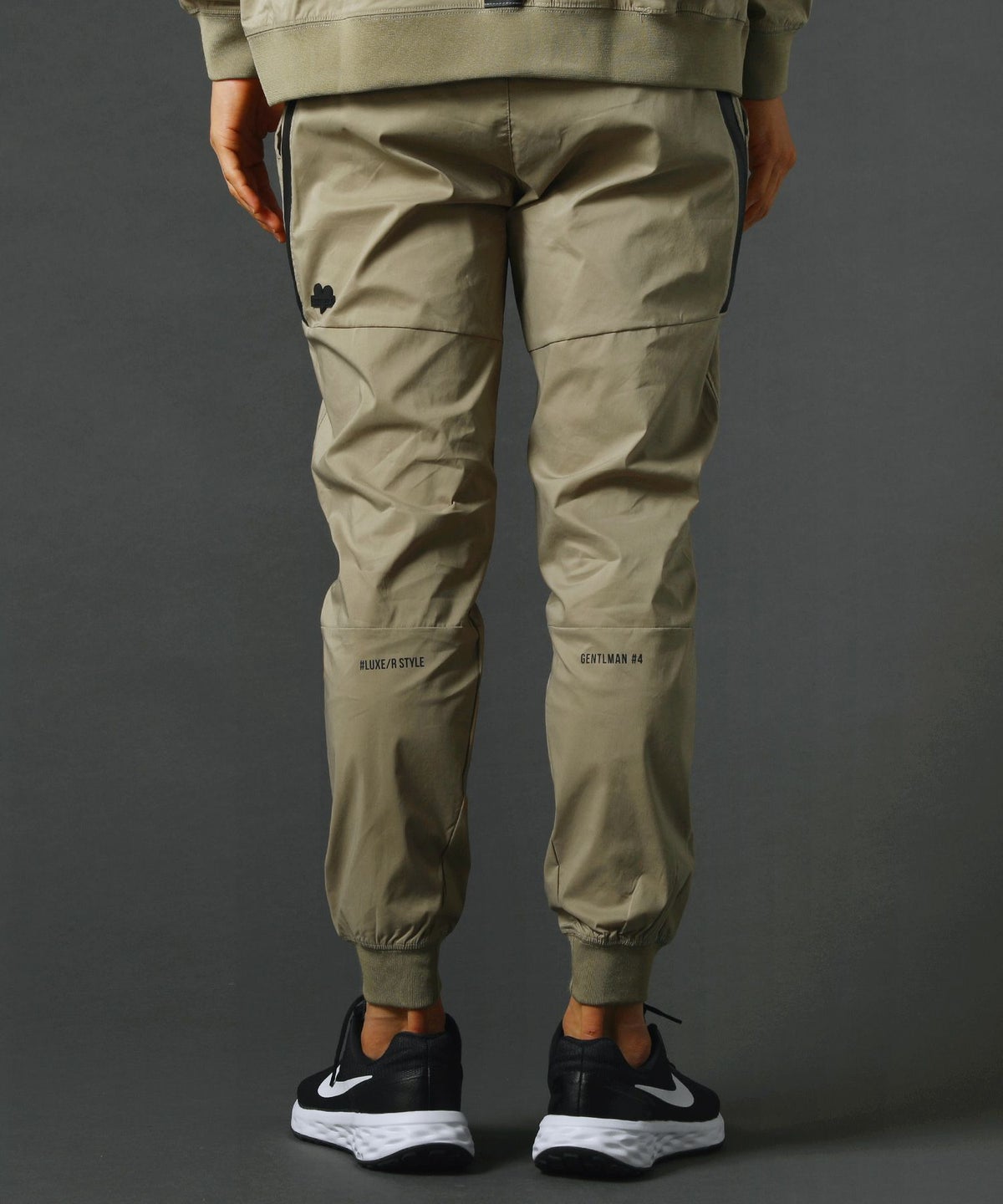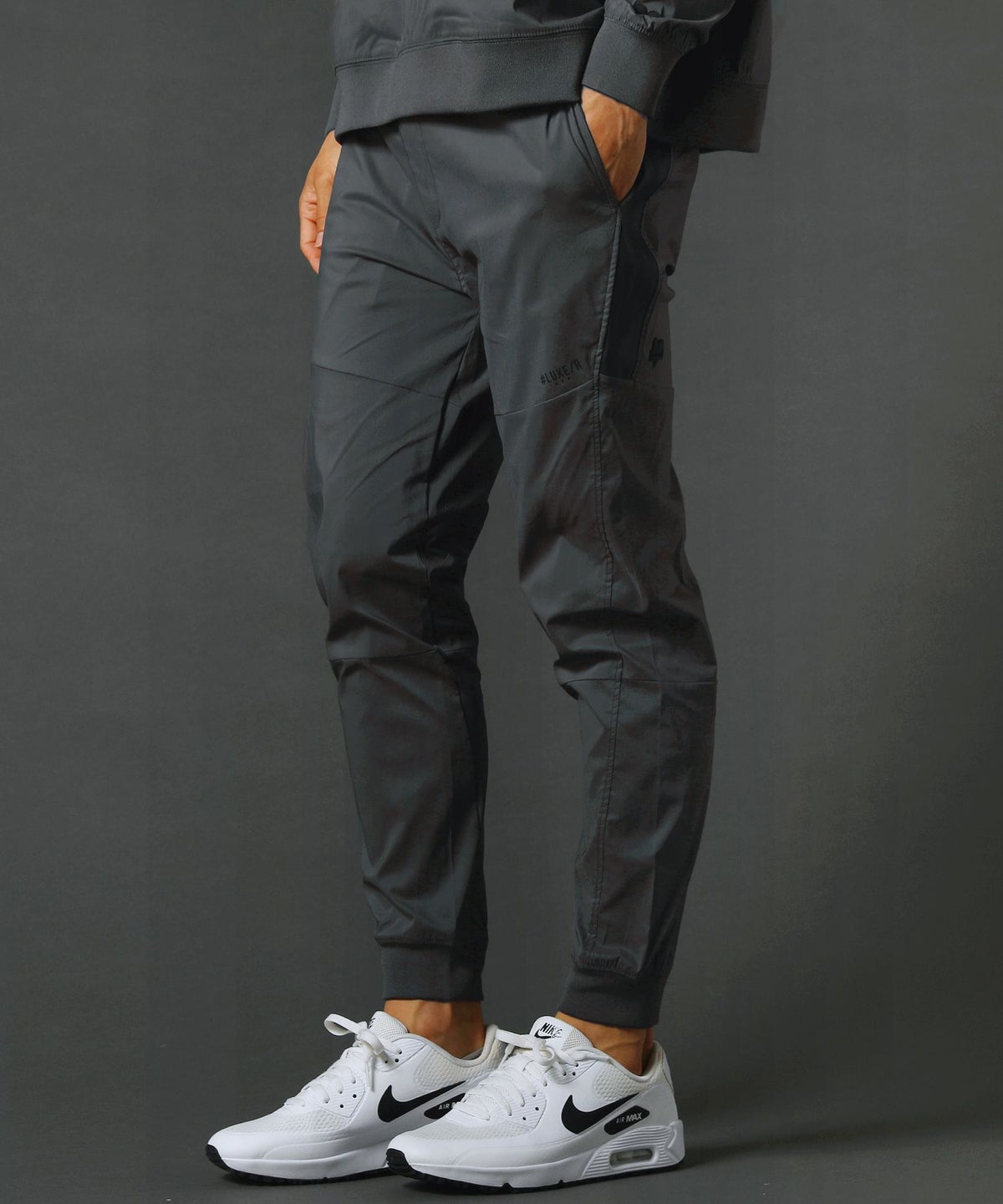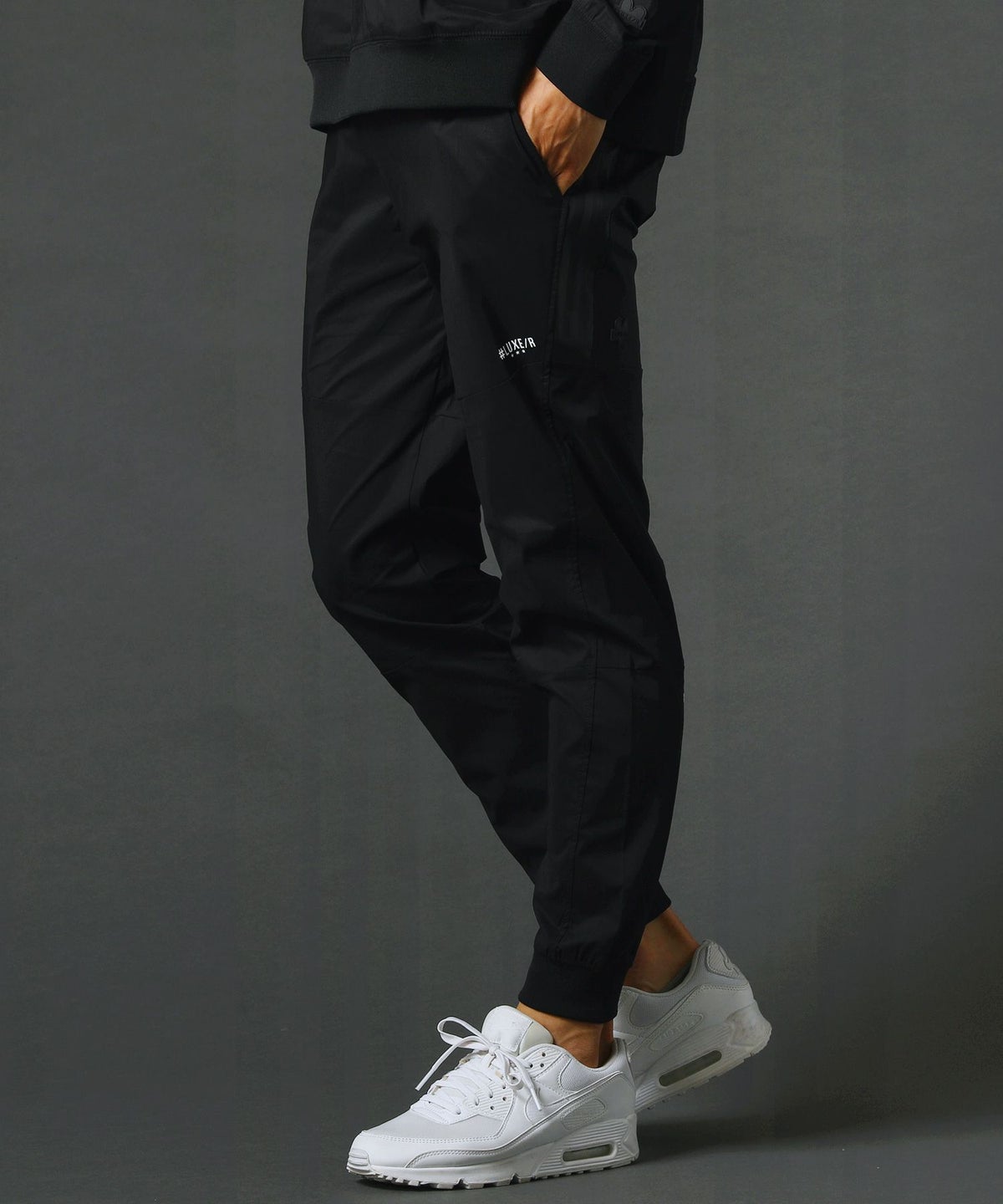 ベルトループ付きストレッチ布帛メッシュ貼付止水ジップジョガーパンツ