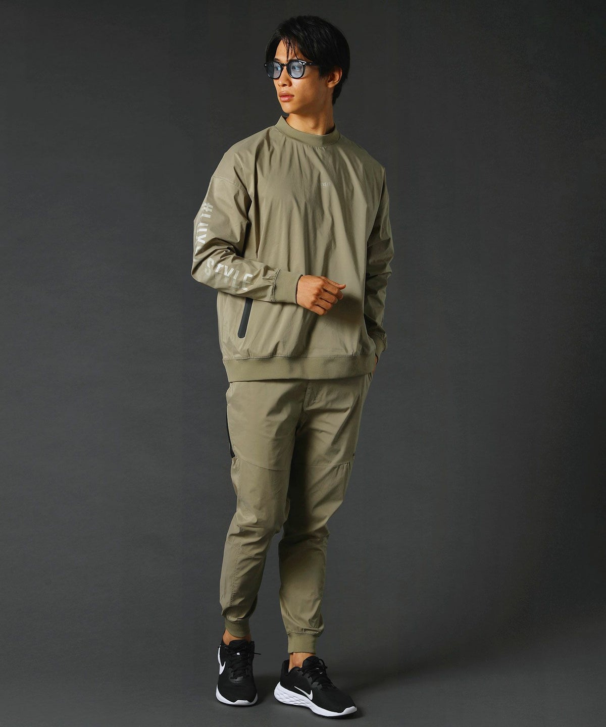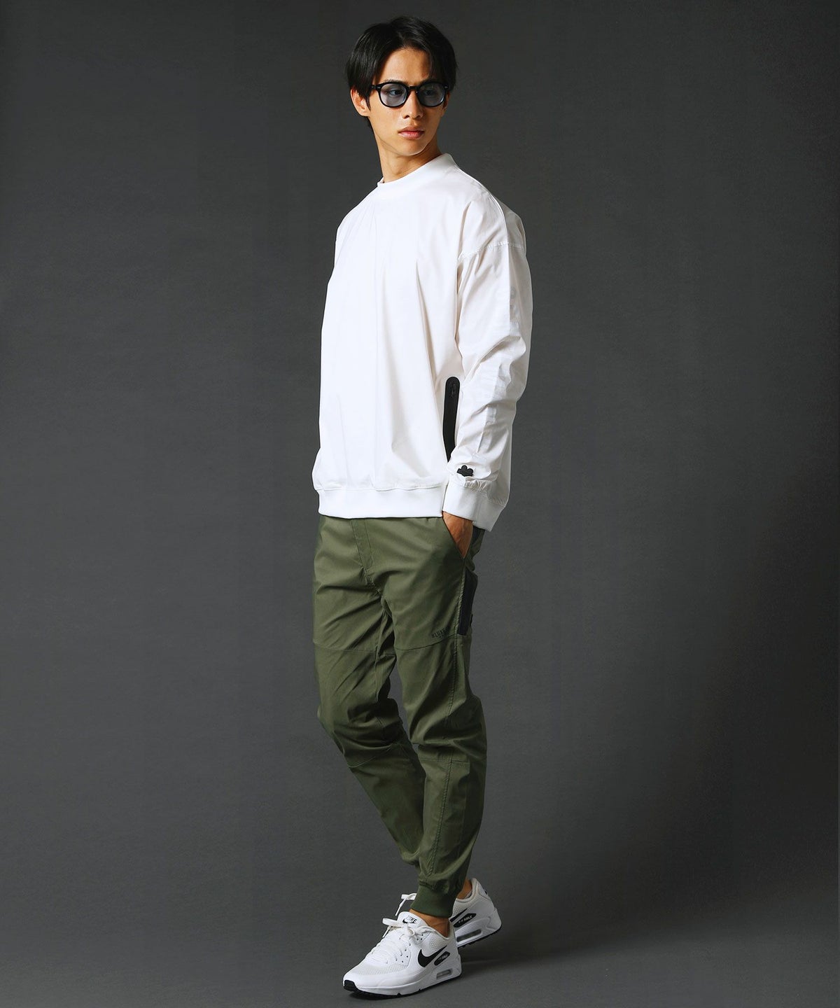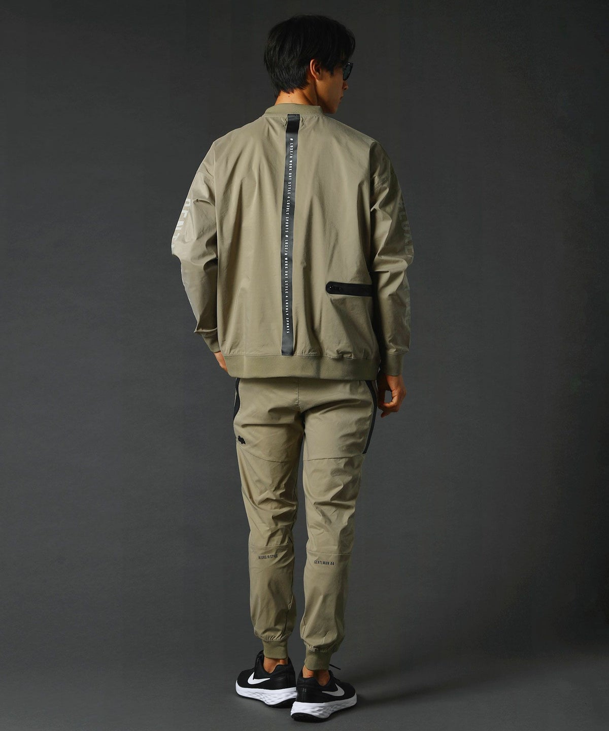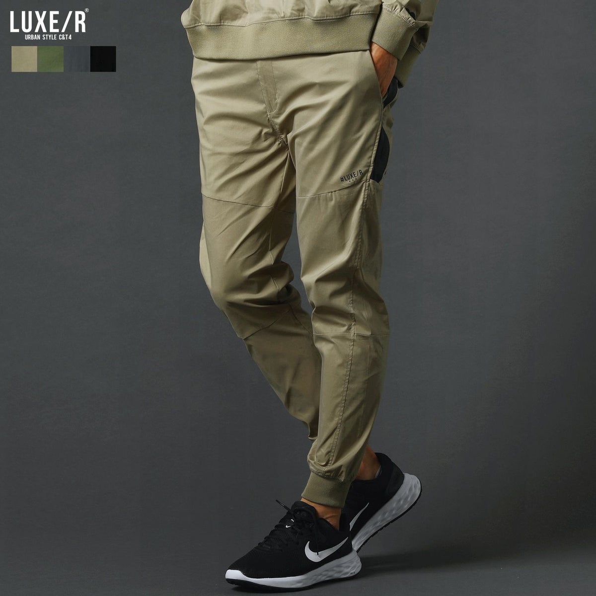 ベルトループ付きストレッチ布帛メッシュ貼付止水ジップジョガーパンツ