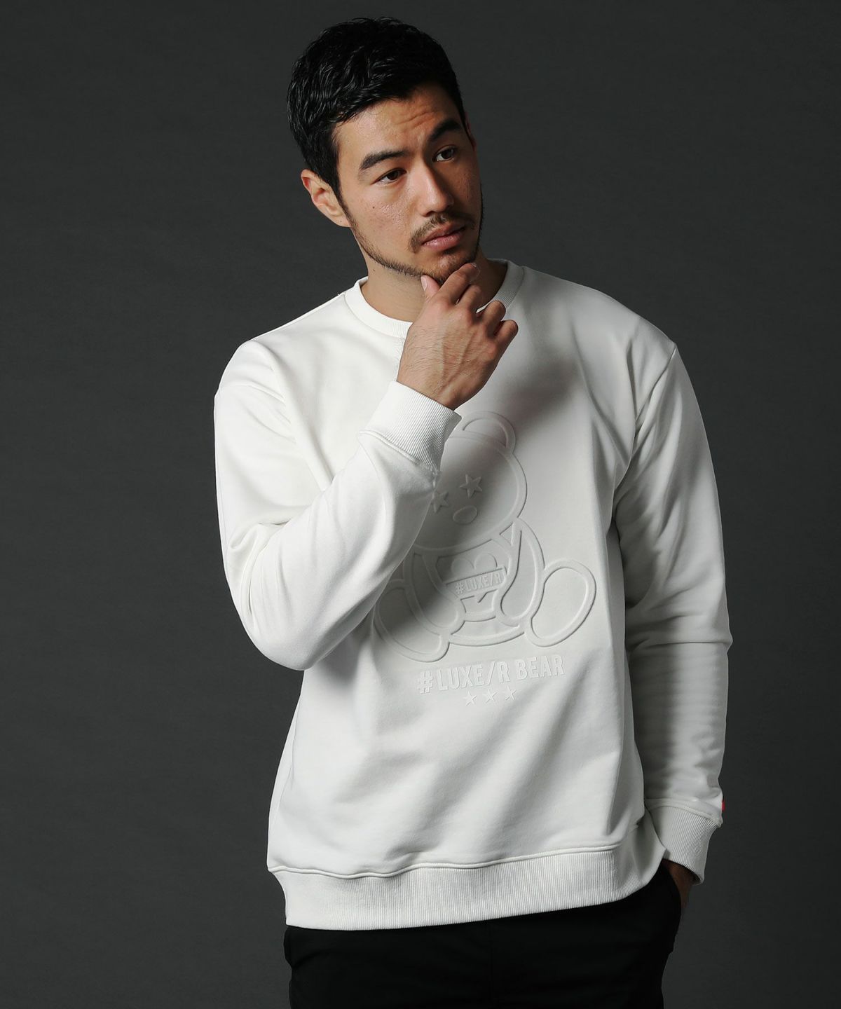 他の画像を見る LUXE/R エンボス加工裏毛LUXE/R BEARクルーネックスウェット ¥ 7,590 税込 販売期間 2022/10/28 12:00 〜 在庫切れ カートに入れる お気に入りに登録する