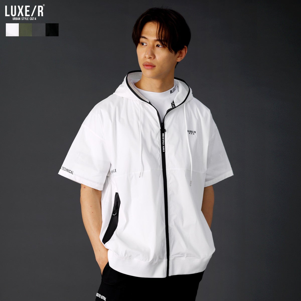 他の画像を見る LUXE/R 撥水加工コットンナイロンストレッチ布帛止水ジップ半袖ジップアップパーカー GOLF ¥ 10,890 税込 販売開始前です。 販売期間 2026/04/10 12:00 〜 カートに入れる お気に入りに登録する